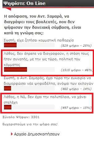 Αυτό δείχνει δημοσκόπηση του Ε.Τ, που είναι ανηρημένη στην ιστοσελίδα της εφημερίδας ( http://www.e-typos.com )